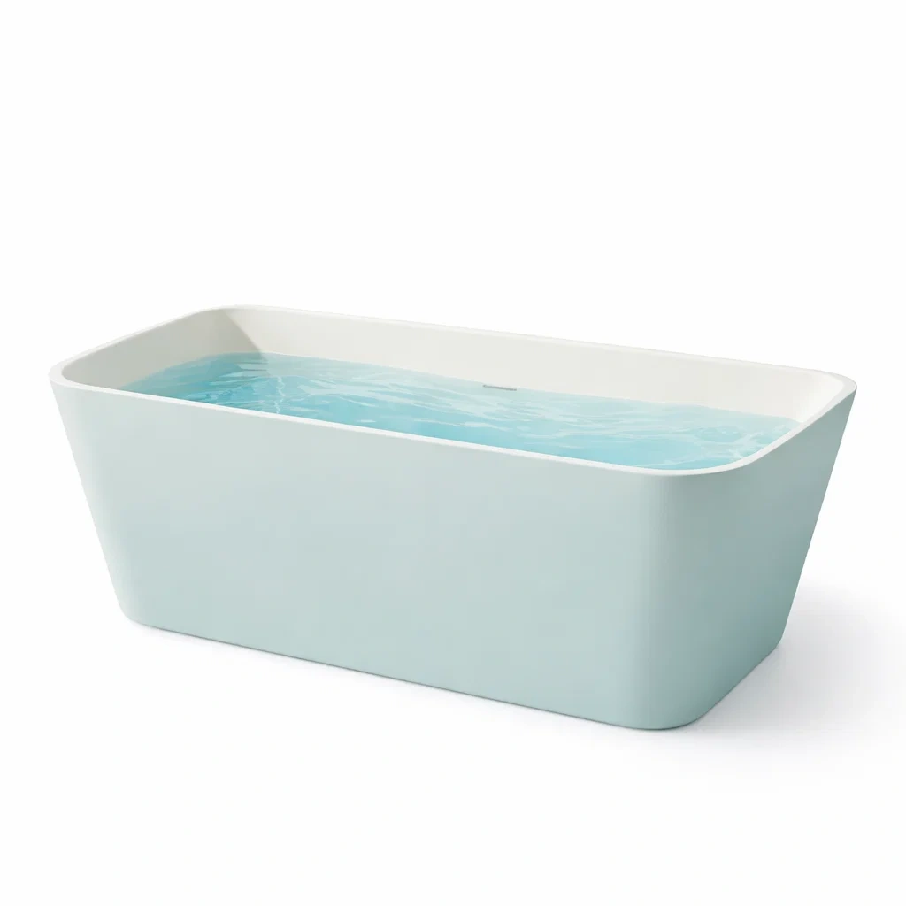 Baignoire autoportante rectangulaire en acrylique bleu et blanc