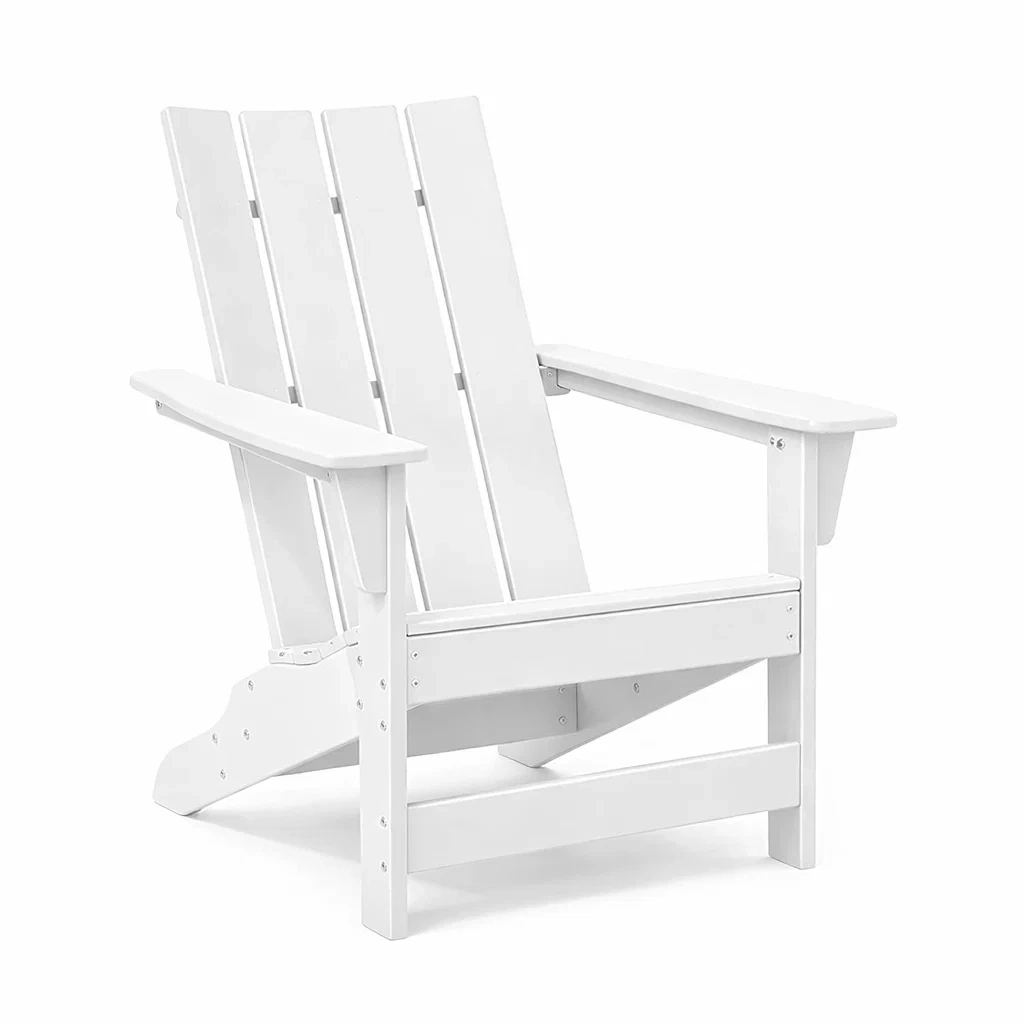 Cette chaise Adirondack est fabriquée en polyéthylène haute densité, offrant une durabilité et une résistance aux intempéries. Sa construction robuste permet un usage extérieur durable.
