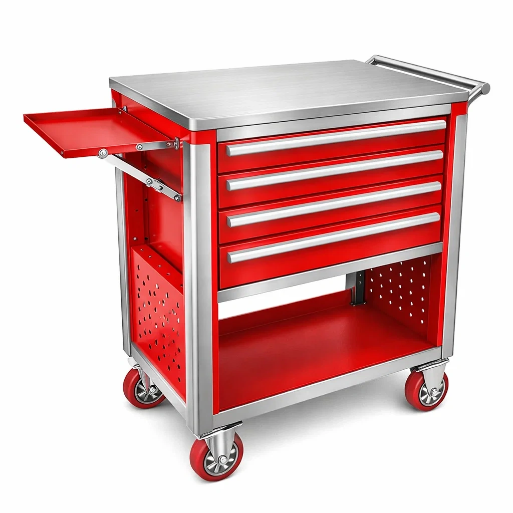 - Espaces de rangement : 4 tiroirs, étagère inférieure, plateau latéral extensible