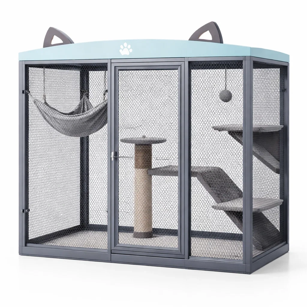 Enclos pour chat en métal avec hamac et plateformes gris 180 x 90 x 180 cm