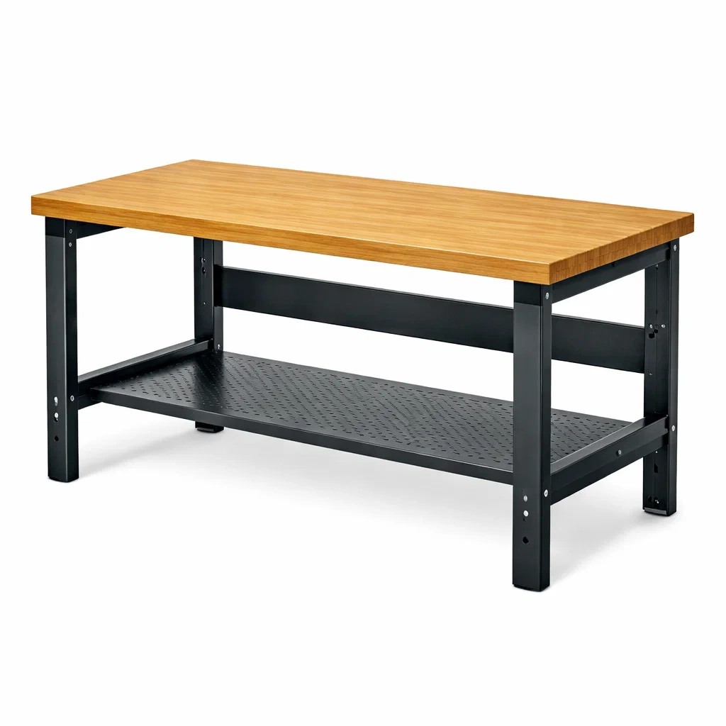 L'établi est fabriqué en bois de chêne avec une structure en acier robuste.